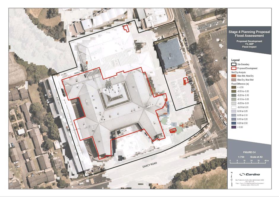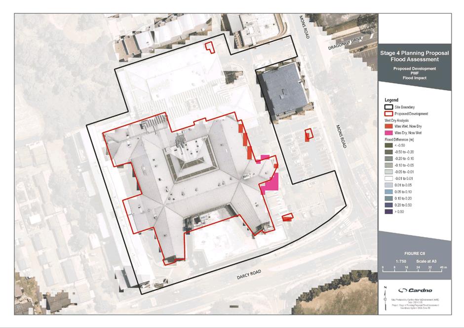 The proposal reduces the number of lower-level apartments into a taller built form. Any potential flooding impacts as a result of development or below ground structures on the site, such as stormwater runoff- and basement parking, will be considered and addressed appropriately at DA stage. |