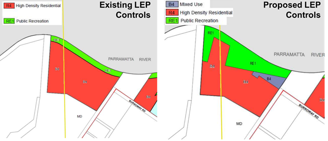 The surrounding Wentworth Point area includes numerous high-density residential and mixed-use buildings, and the proposed zoning is consistent with this character. By amending the controls in this way, some apartment buildings will be noticeably higher, however this will facilitate more public open space on site and the potential for a future public transport link to service the area in future. |